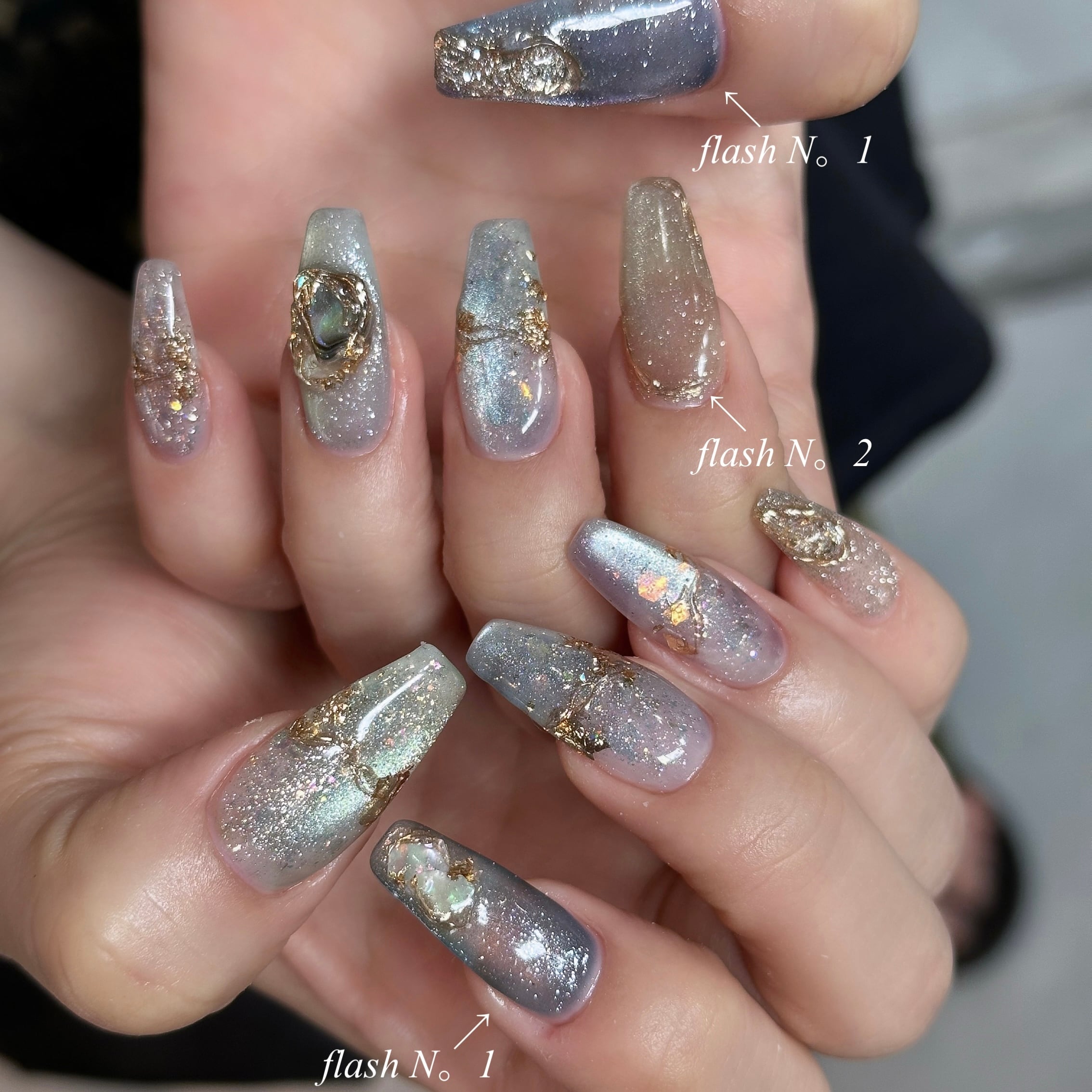 キラキラのFlashグリッタージェルの中に繊細な輝きを放つマグネットを配合しました。